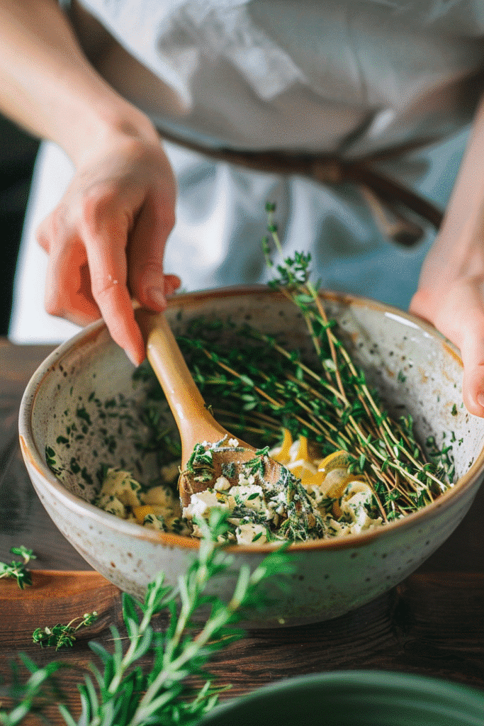 Prepare herb butter: Mix softened butter with garlic, herbs, salt, pepper, and paprika.
