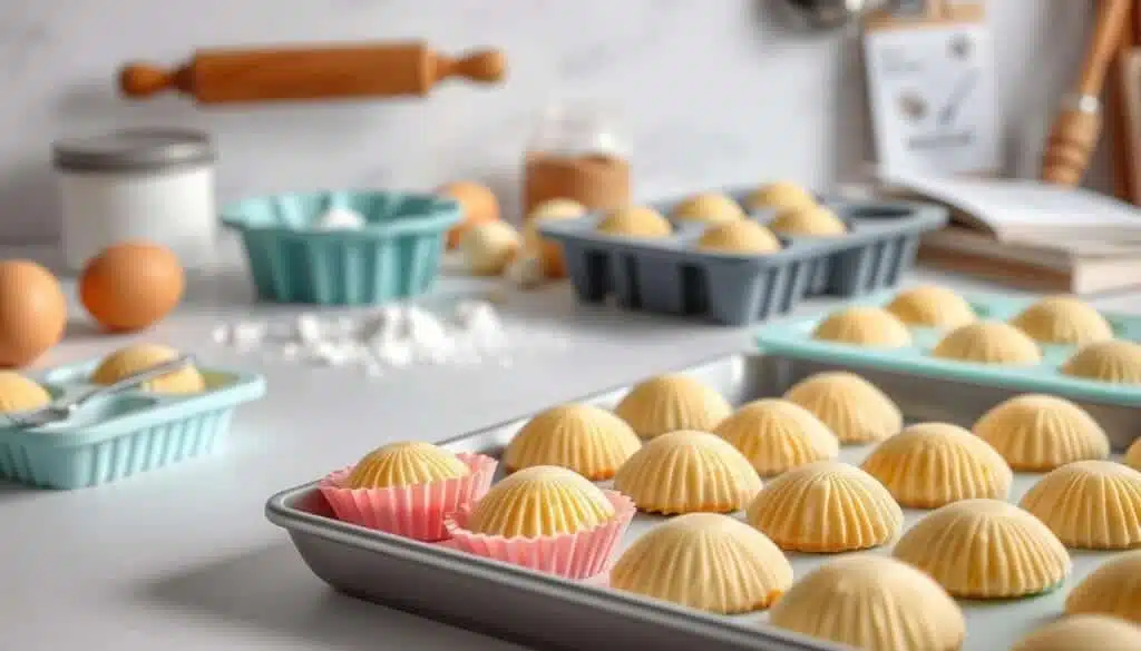 Using silicone molds for baking is a big help. They spread heat evenly, which is key for a good bake. Unlike metal molds, silicone keeps the dough moist, making the madeleines soft.
